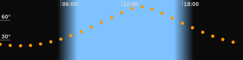 | Höchster Stand (Kulmination) | 13:55 Uhr (h = 79,9°) |