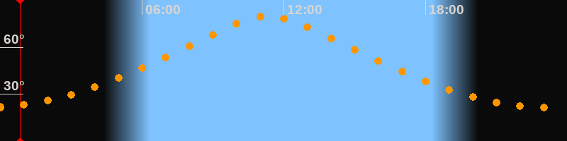 | Höchster Stand (Kulmination) | 11:20 Uhr (h = 79,9°) |