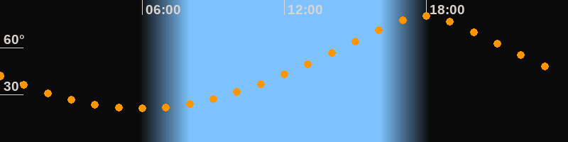 | Höchster Stand (Kulmination) | 17:54 Uhr (h = 79,9°) |