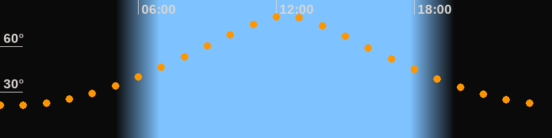 | Höchster Stand (Kulmination) | 12:25 Uhr (h = 79,9°) |