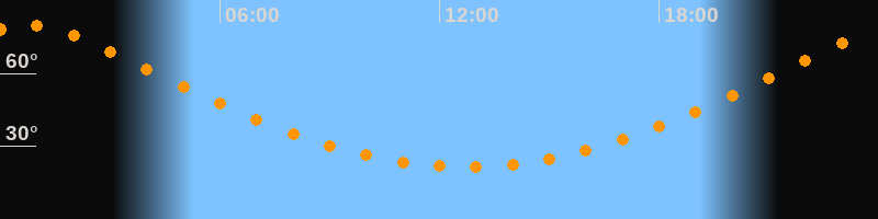 | Höchster Stand (Kulmination) | 00:43 Uhr (h = 79,9°) |