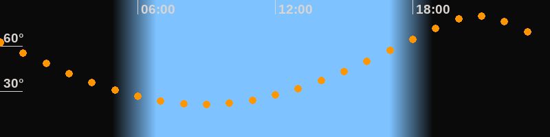 | Höchster Stand (Kulmination) | 20:51 Uhr (h = 79,9°) |