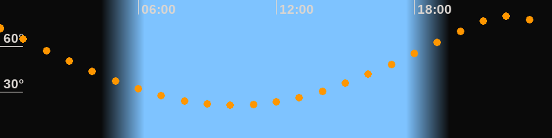 | Höchster Stand (Kulmination) | 22:06 Uhr (h = 79,9°) |