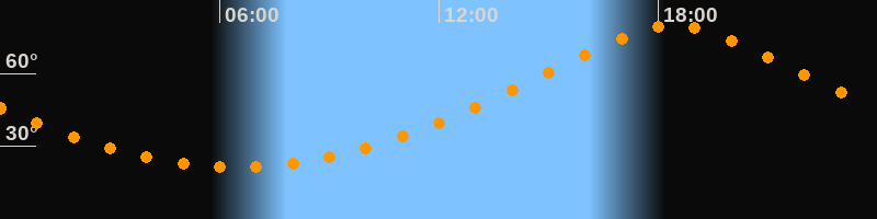 | Höchster Stand (Kulmination) | 18:26 Uhr (h = 79,9°) |