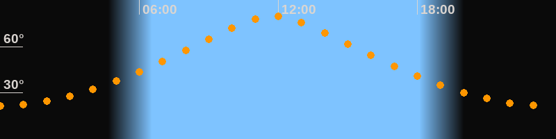 | Höchster Stand (Kulmination) | 11:46 Uhr (h = 79,9°) |