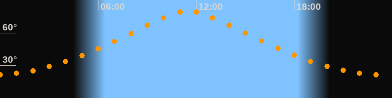 | Höchster Stand (Kulmination) | 11:30 Uhr (h = 79,9°) |