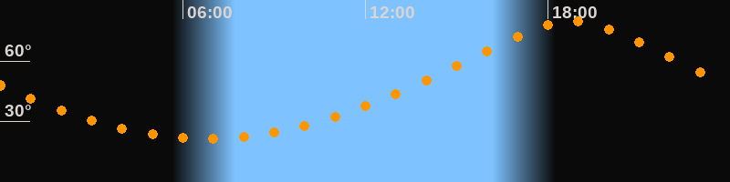 | Höchster Stand (Kulmination) | 18:48 Uhr (h = 79,9°) |