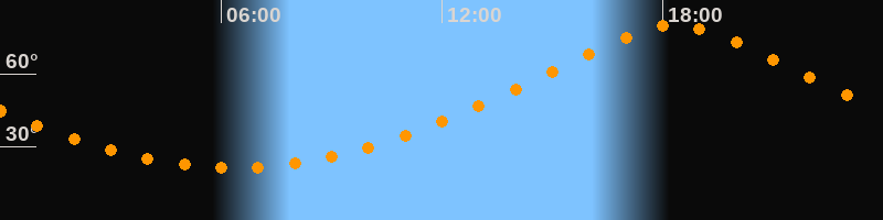 | Höchster Stand (Kulmination) | 18:20 Uhr (h = 79,9°) |