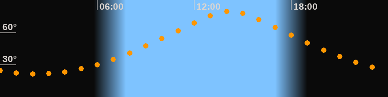 | Höchster Stand (Kulmination) | 14:12 Uhr (h = 79,9°) |