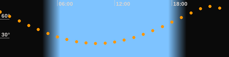 | Höchster Stand (Kulmination) | 22:05 Uhr (h = 79,9°) |
