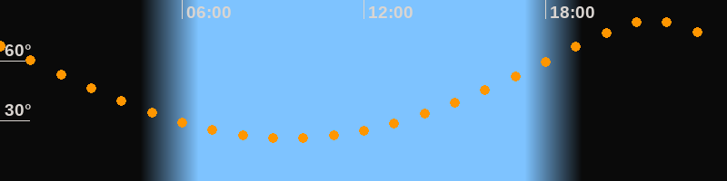 | Höchster Stand (Kulmination) | 21:31 Uhr (h = 79,9°) |