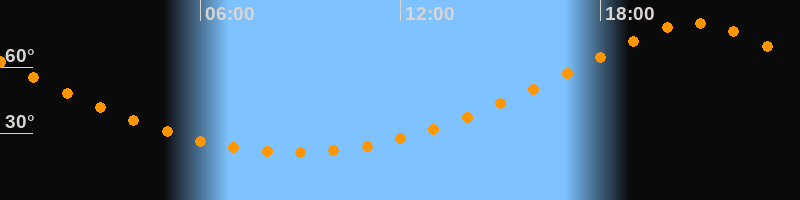 | Höchster Stand (Kulmination) | 20:49 Uhr (h = 79,9°) |
