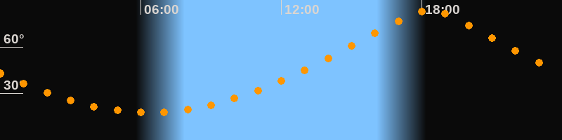 | Höchster Stand (Kulmination) | 18:19 Uhr (h = 83,6°) |