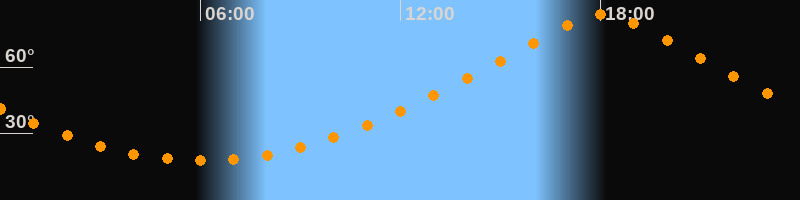 | Höchster Stand (Kulmination) | 18:03 Uhr (h = 83,6°) |