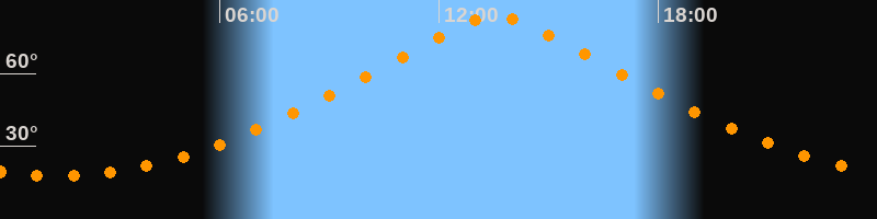 | Höchster Stand (Kulmination) | 13:33 Uhr (h = 83,6°) |