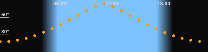 | Höchster Stand (Kulmination) | 11:59 Uhr (h = 83,6°) |