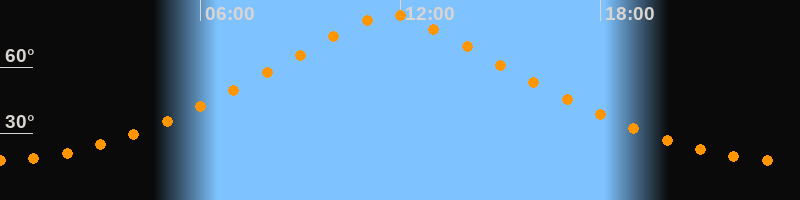 | Höchster Stand (Kulmination) | 11:43 Uhr (h = 83,6°) |