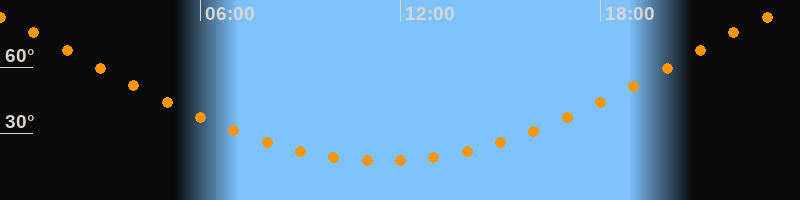 | Höchster Stand (Kulmination) | 23:28 Uhr (h = 83,6°) |