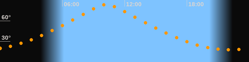 | Höchster Stand (Kulmination) | 10:14 Uhr (h = 83,6°) |
