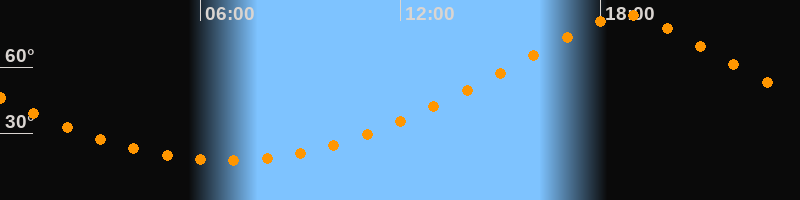| Höchster Stand (Kulmination) | 18:45 Uhr (h = 83,6°) |