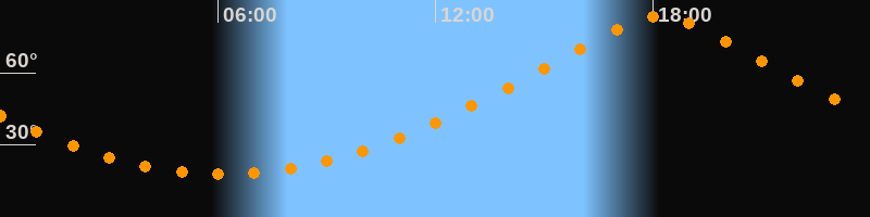 | Höchster Stand (Kulmination) | 18:11 Uhr (h = 83,6°) |