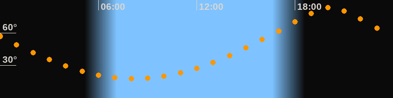 | Höchster Stand (Kulmination) | 20:09 Uhr (h = 83,6°) |