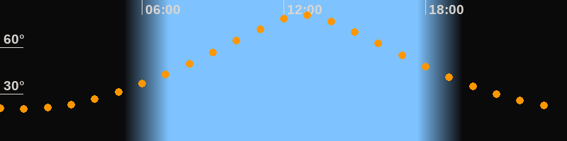 | Höchster Stand (Kulmination) | 12:52 Uhr (h = 80,8°) |