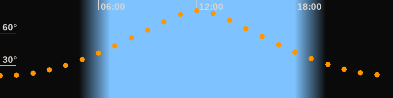 | Höchster Stand (Kulmination) | 12:04 Uhr (h = 80,8°) |