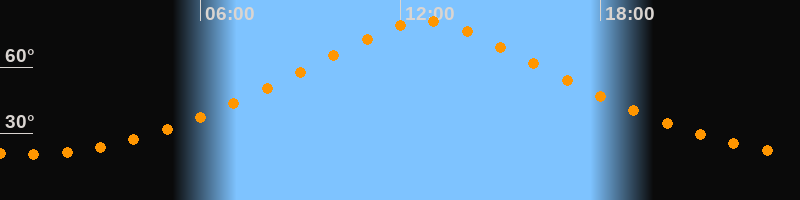 | Höchster Stand (Kulmination) | 12:45 Uhr (h = 80,8°) |