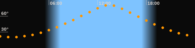 | Höchster Stand (Kulmination) | 13:25 Uhr (h = 80,8°) |