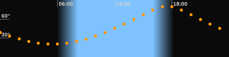 | Höchster Stand (Kulmination) | 17:29 Uhr (h = 80,8°) |