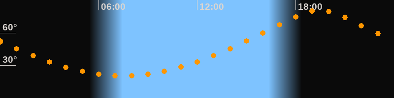 | Höchster Stand (Kulmination) | 19:27 Uhr (h = 80,8°) |