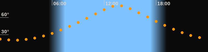 | Höchster Stand (Kulmination) | 13:37 Uhr (h = 80,8°) |