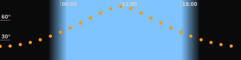 | Höchster Stand (Kulmination) | 12:00 Uhr (h = 80,8°) |
