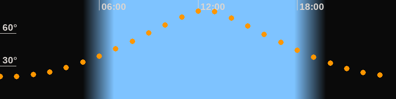 | Höchster Stand (Kulmination) | 12:25 Uhr (h = 80,8°) |