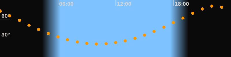 | Höchster Stand (Kulmination) | 22:12 Uhr (h = 80,8°) |