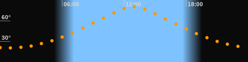 | Höchster Stand (Kulmination) | 12:54 Uhr (h = 80,8°) |