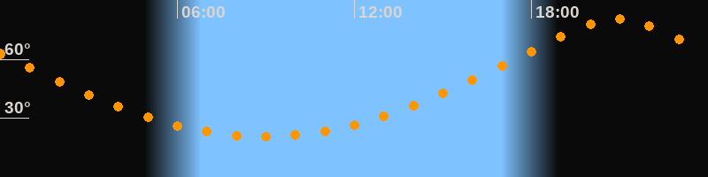 | Höchster Stand (Kulmination) | 20:54 Uhr (h = 80,8°) |