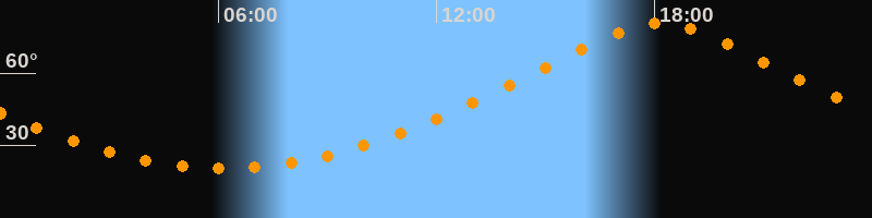 | Höchster Stand (Kulmination) | 18:09 Uhr (h = 80,8°) |