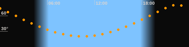 | Höchster Stand (Kulmination) | 22:26 Uhr (h = 80,8°) |