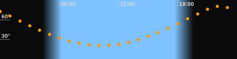 | Höchster Stand (Kulmination) | 22:15 Uhr (h = 80,8°) |