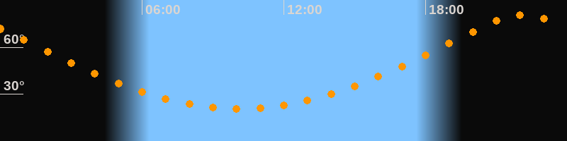 | Höchster Stand (Kulmination) | 22:07 Uhr (h = 80,8°) |