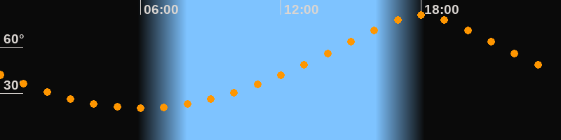 | Höchster Stand (Kulmination) | 18:00 Uhr (h = 80,8°) |