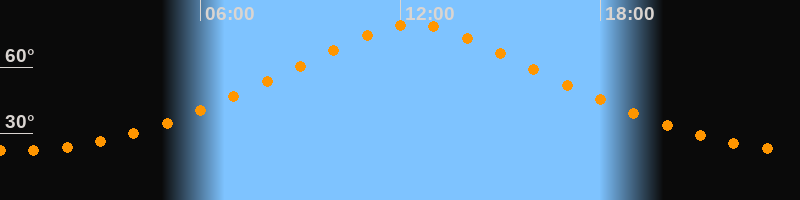 | Höchster Stand (Kulmination) | 12:23 Uhr (h = 79,3°) |