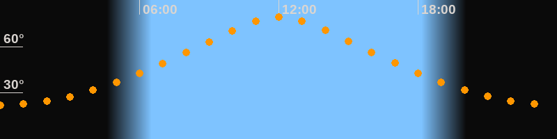 | Höchster Stand (Kulmination) | 12:00 Uhr (h = 79,3°) |