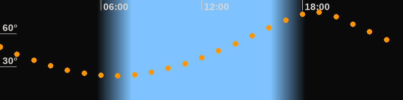 | Höchster Stand (Kulmination) | 18:44 Uhr (h = 79,3°) |