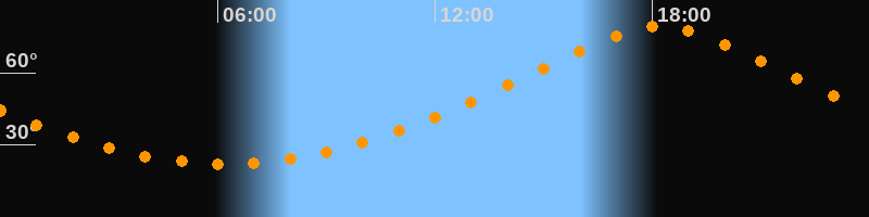 | Höchster Stand (Kulmination) | 18:12 Uhr (h = 79,3°) |
