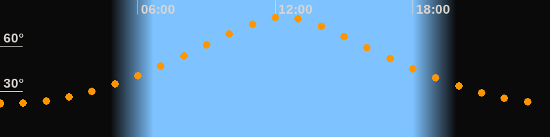 | Höchster Stand (Kulmination) | 12:22 Uhr (h = 79,3°) |