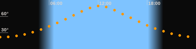 | Höchster Stand (Kulmination) | 12:10 Uhr (h = 79,3°) |