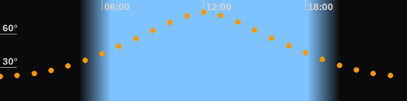 | Höchster Stand (Kulmination) | 12:02 Uhr (h = 79,3°) |